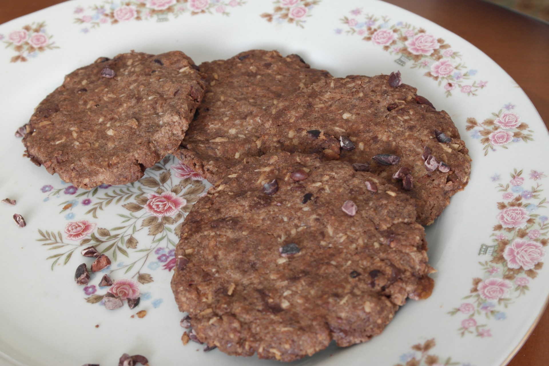This recipe is gluten-free using a mix of buckwheat, cacao powder and desiccated coconut sweetened very lightly with coconut palm sugar and date syrup. I’ve added some vanilla extract as it works really well in the mix. This cookie is served best with a delicious cup of afternoon tea or even just a cold cup of silky almond milk.