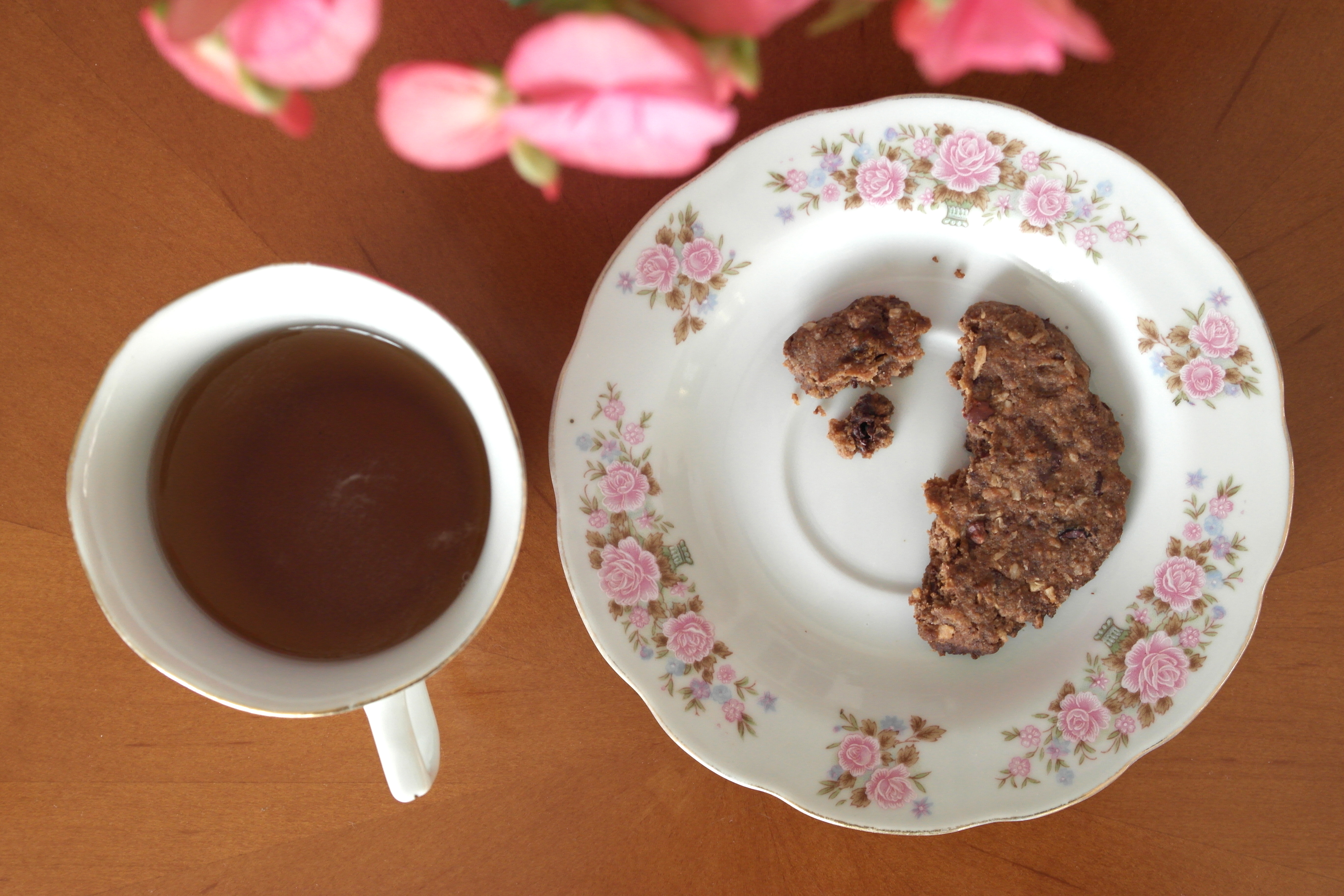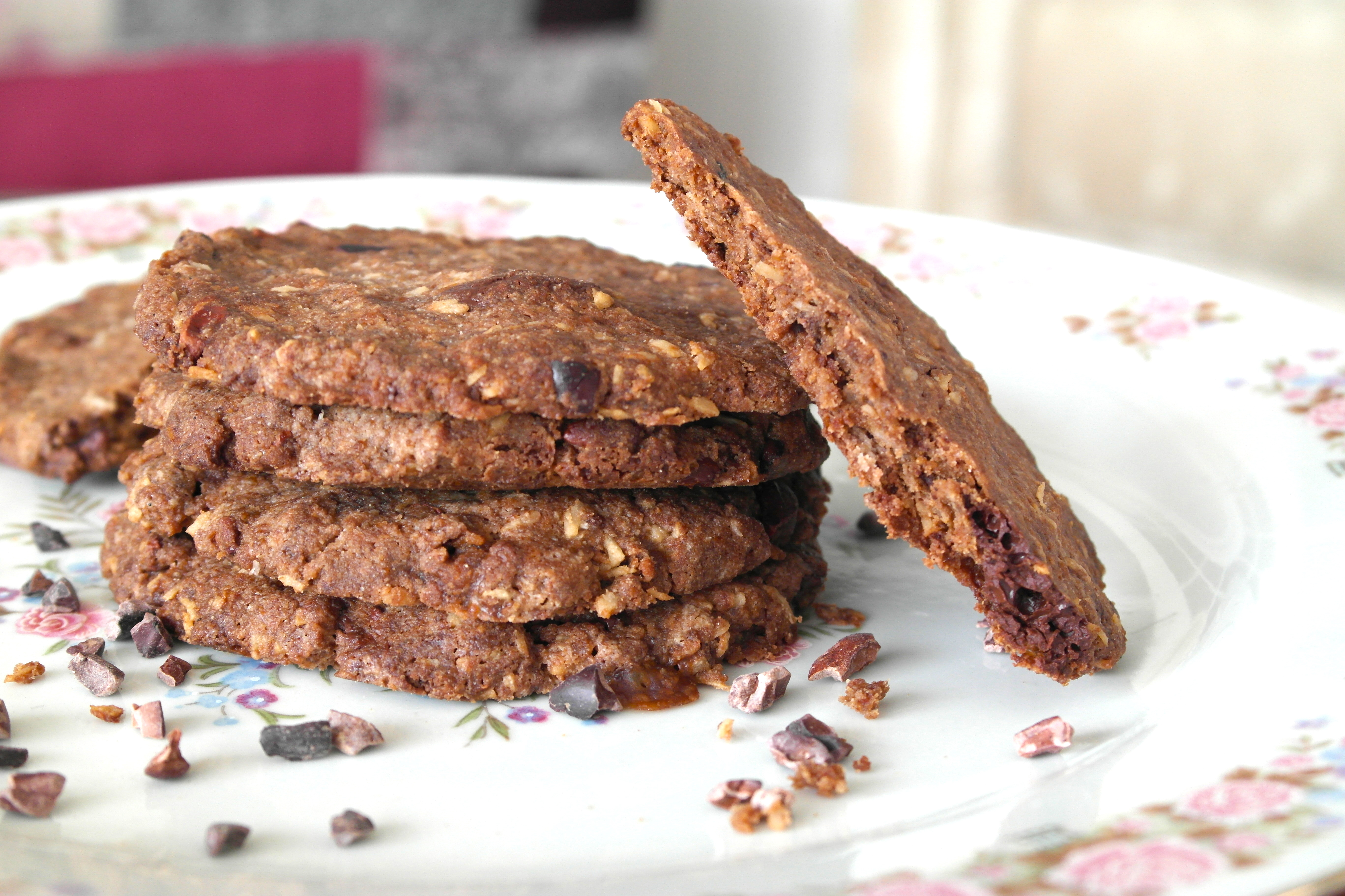 This recipe is gluten-free using a mix of buckwheat, cacao powder and desiccated coconut sweetened very lightly with coconut palm sugar and date syrup. I’ve added some vanilla extract as it works really well in the mix. This cookie is served best with a delicious cup of afternoon tea or even just a cold cup of silky almond milk.