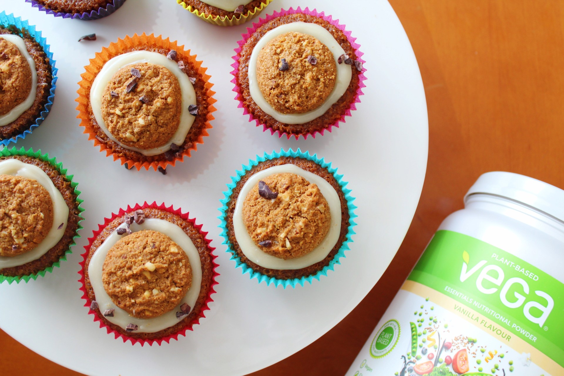 I’m excited to be working with Vega UK to share my Vitamin Stories. A balanced and nutritious diet is so important, but when we’re super busy this can be one of the first things to fall by the wayside. In this recipe, I have used their Vanilla Protein Powder – it adds natural sweetness to the cupcakes and extra amazing texture.