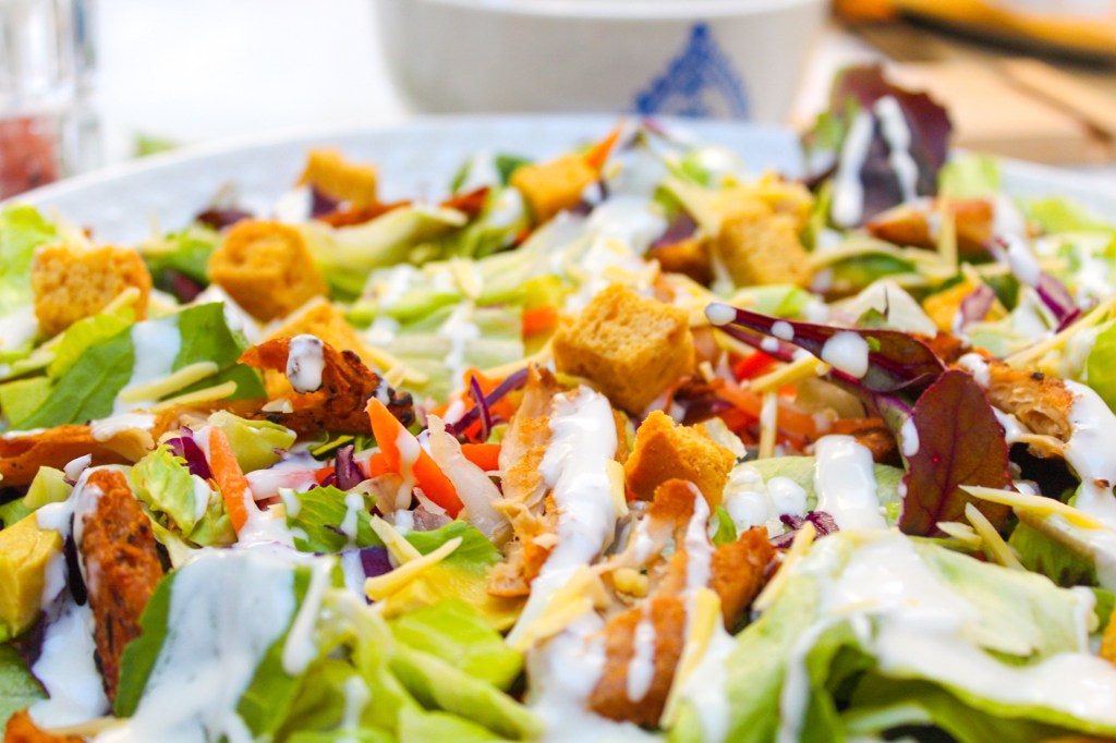 Crisp lettuce drizzled in a creamy Caesar dressing, topped with crunchy croutons and plant based chicken. It’s the perfect crowd-pleasing dish that’s packed full of nourishing ingredients. Everyone loves it! Vegan or not.