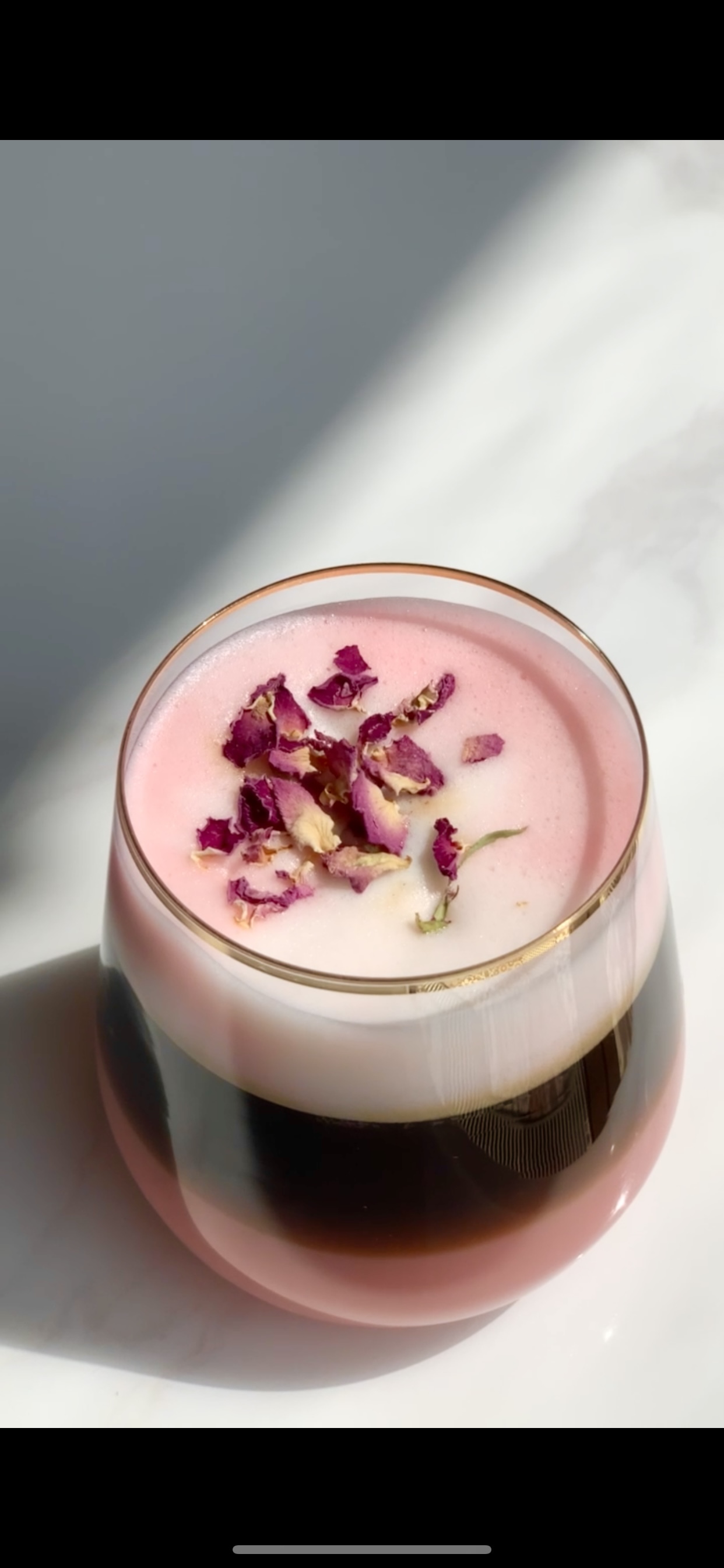Pink Rose Coffee June 19, 2021 by Sarah’s Coffee 1-2 shots espresso 1 tsp rose syrup 1/2 cup oat milk Dried edible roses Froth the milk along with the syrup using an electric hand whisk. Add into a glass with ice. Pour over the coffee and stir. Top with roses. Serve and enjoy! Share this: Click to share on X (Opens in new window) X Click to share on Facebook (Opens in new window) Facebook Like Loading... Sarah’s Coffee Related Leave a comment Cancel reply Δ